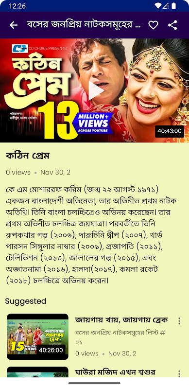 The app is made with the compilation of Mosharraf Korim Natok - Mosharraf Korim Natok App
