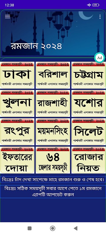 রমজানের মাসের সঠিক সময়সূচীর জন্য আজিই আমাদের এই এ্যাপটি ব্যবহার করুন। কেননা এই এ্যাপে আছে রমজানের সঠিক সময়সূচি। তার সাথে এই এ্যাটি তে আরো যা পাবেন