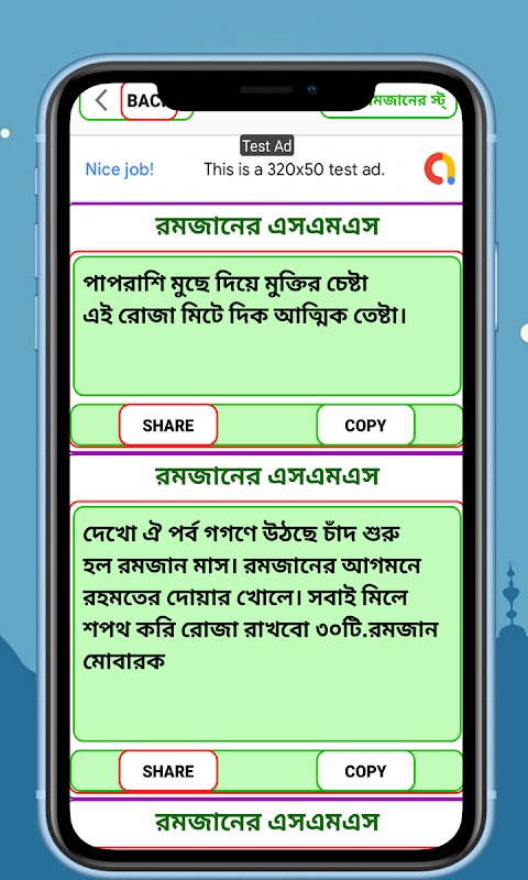 খোশ আমদেদ মাহে রমজান।রমজান মাস খুবই সন্নিকটে।মাহে রমজান ২০২১ খুব শীঘ্রই শুরু হতে যাচ্ছে।এই রমজানে আপনার প্রিয়জনদের রমজানের শুভেচ্ছা জানানোর জন্য মাহে রমজানের এসএমএস- অ্যাপটি তৈরি করা হয়েছে।এই এস এম এস অ্যাপটির মাধ্যমে আপনের বন্ধুদের পবিত্র রমজানুল মোবারক বাদ বিনিময় করুন।