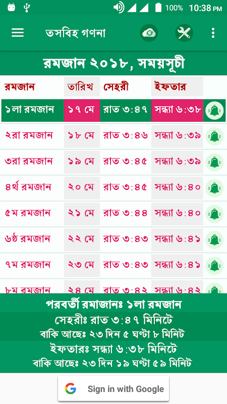 রমজান ক্যালেন্ডার ২০১৮ঃ সময়সূচী, সেহরি এলার্ম