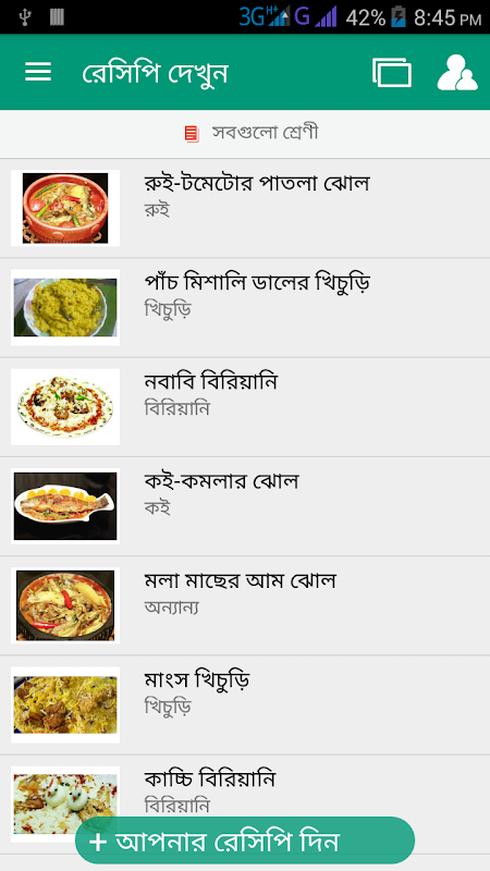 ১. রেসিপি গুলো আলাদা আলাদা ভাবে নির্দিষ্ট শ্রেণীতে বিভক্ত করা আছে।