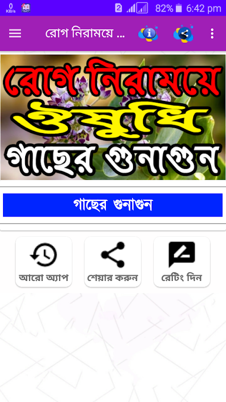 অ্যাপটির মাধ্যমে কঠিন রোগ মুক্তির জন্য ঔষধি গাছের ব্যবহার সম্পর্কে জানতে পারবেন।