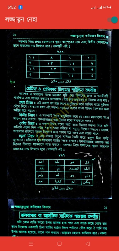 বিজ্ঞানের বর্তমান এই যুগে অনেকেই তাবিজ, বিশ্বাস করেন না। অনেকে আবার বিশ্বাস করে উপকারও পেয়ে থাকেন। তাবিজ সাহায্যে কেউ উপকার পেয়েছে এমন সংবাদ শুনে অনেকে হাসি-ঠাট্টা-বিদ্রুপ করে থাকেন। তাবিজ, অতীতে ছিল, বর্তমানে আছে, ভবিষ্যতেও থাকবে। সুতরাং আমি অনুরােধ করবাে আপনারা একে হেয়। জ্ঞান করবেন না। যারা এই শাস্ত্র বিশ্বাস করেন তাদের কাছে আমার অনুরােধ আমার এই গ্রন্থের তাবিজ ও মন্ত্রনাদি ঠিক মতাে নিয়ম অনুসরণ করে নিষ্ঠার সাথে প্রয়ােগ করে পরীক্ষা করে দেখুন। আমি নিজে অনেক পরিশ্রম করে দুর্লভ গ্রন্থ সংগ্রহ করে তা থেকে সংকলন করেছি। আমি নিজে প্রয়ােগ করে অনেক আমল পরীক্ষা করে দেখেছি এবং যথাযথ উপকারও পেয়েছি। কোন গুরুতর আমল ও তাবিজের জন্য বিশেষ অভিজ্ঞ কামিল ও বুযুর্গ আলিম, উস্তাদু অথবা পীর মাশায়েখ এর নিকট হতে অনুমতি লাভ করে নেয়া উত্তম। এতে তাদের নিকট হতে সংশ্লিষ্ট বিষয় সম্পর্কে প্রয়ােজনীয় উপদেশ পাওয়া যাবে এবং আবদ্ধ কার্যে আশানুরূপ ফল দর্শিবে। আমি অত্র কিতাবের। সংকলক সকল পাঠককে ভালােকাজের জন্য এজাজত দিলাম । আমার বিশ্বাস এই গ্রন্থে লিখিত নিয়মে তাবিজ কবজ করলে ভালাে ফল পাবেন। জনসমাজে নিকট বইটি সমাদৃত হলে আমার শ্রম সার্থক হবে।