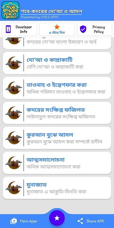 আল্লাহ আমাদের সকল কে শবে কদরের নামাজ পড়ার এবং উত্তম আমল করার তৌফিক দান করুন। অ্যাপটি ভালো লাগলে অবশ্যই ৫ স্টার দিবেন এবং এই অ্যাপ সম্পর্কে কোন মতামত থাকলে কমেন্টের মাধ্যমে জানাবেন।