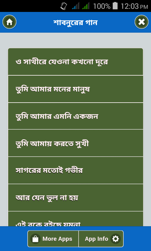 বাংলাদেশে যত সফল নায়ক নায়িকা রয়েছে, শাবনুর তাঁদের মধ্যে অন্যতম। শাবনুরের অভিনয় পারদর্শিতা, অভিজ্ঞতা এবং সিল্পসত্তা তাকে বাংলা সিনেমার এক অন্য জগতে নিয়ে গিয়েছে। শাবনুরের গান বা শাবনুরের সিনেমার গান অ্যাপ এ আমরা তাঁর বিখ্যাত এবং ব্যাবসা সফল সকল সিনেমার গান একসাথে করেছি যাতে করে আপনার প্রিয় নায়িকা সাবনুর অভিনীত সিনেমার সকল গান একসাথে শুনতে পারেব। যদিও আমাদের সংস্কৃতিতে নানা ধরণের গান রয়েছে যেমন আধুনিক বাংলা গান, ভাটিয়ালি গান, পালা গান, বাউল গান, বিচ্ছেদ গান ইত্যাদি কিন্তু সিনেমার গানের স্বাদ অন্যরকম। এমন কোন মানুষই খুঁজে পাওয়া যাবে না যে সিনেমার গান পছন্দ করে না।