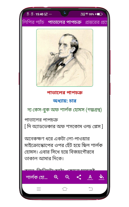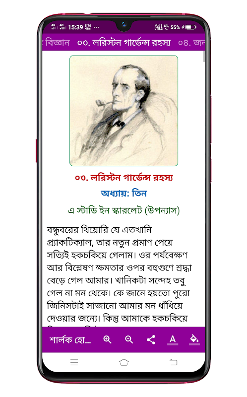 শার্লক হোমস সমগ্র - অ্যাপটিতে নিম্নলিখিত বিষয়গুলি রয়েছে।