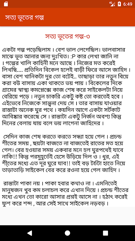 অনেকেই এমন আছেন যারা সর্বদাই নানা গল্প পড়তে পছন্দ করেন । যেমন ভালবাসার গল্প, মজার হাসির গল্প, ইসলামিক গল্প, কান্নার গল্প, কষ্টের ভালবাসার গল্প, ভূতের গল্প, রহস্যময় নানা গল্প, অজানা গল্প আরও নানা রকম গল্প পড়তে পছন্দ করেন । কিন্তু দেখা যায় এই ধরনের কোন এপ্স খুজে পান না তাদের জন্যই মূলত আমাদের ভূতের গল্প এপ্সটি । এই ভূতের গল্প এপ্সটি থেকে আপনার ভূতের গল্প বিষয়ে বিস্তারিত জানতে পারবেন । ভূত বিষয় নানা সত্যিকারের ঘটনা অবলম্বনে তৈরি করা হয়েছে ভূতের গল্প এই এপ্সটি ।