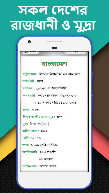 Friends, today I have brought for you an app about general knowledge. I hope the app will come in handy to increase your intelligence. In this app, the name of the capital of each country, currency, size of the country, population and language of each country are discussed. This app will definitely give you general knowledge. Because it is a Bengali educational app. The app has been made suitable for all the exams including BCS, job, varsity admission test. So download today without waiting.