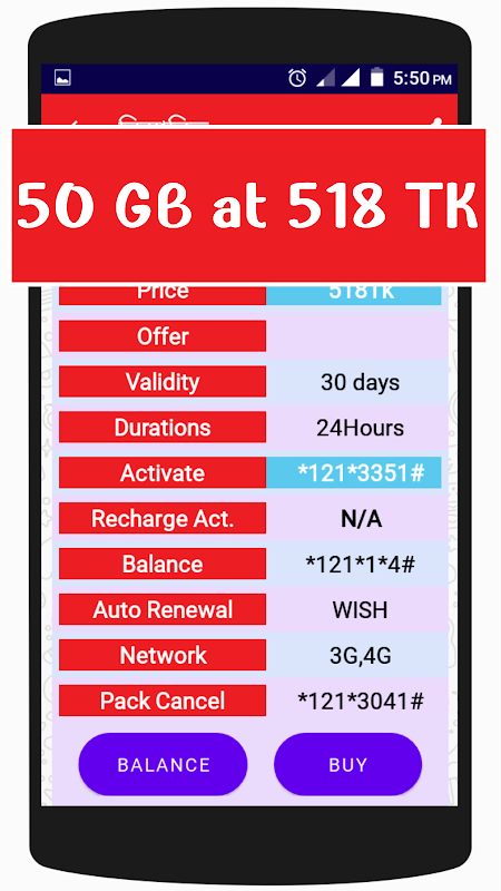 All bd sim free internet, low-cost call rate and free Wi-Fi system is very popular way in Bangladesh for mobile user. All Gp, Robi, Bl, Airtel & Teletalk mobile operators’ internet and minutes package info within one app. You can easily buy any minute’s plans & Internet Bundles subscribe & activated. Also, you check remaining data balance any internet or minute’s package.