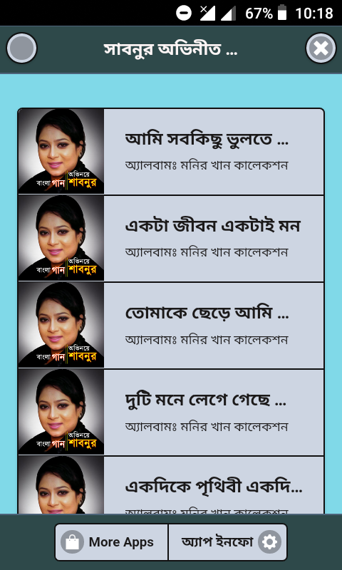 Anyone who does not love listening to and watching Sabanur's music will be found. Sabanur is the best of all the heroes who have acted in Bengali cinema. The famous actress has acted in almost two hundred Bengali films, of which almost all films are commercially successful. In this app, all the best songs from the Bengali movies played by Sabanu are given in audio form.