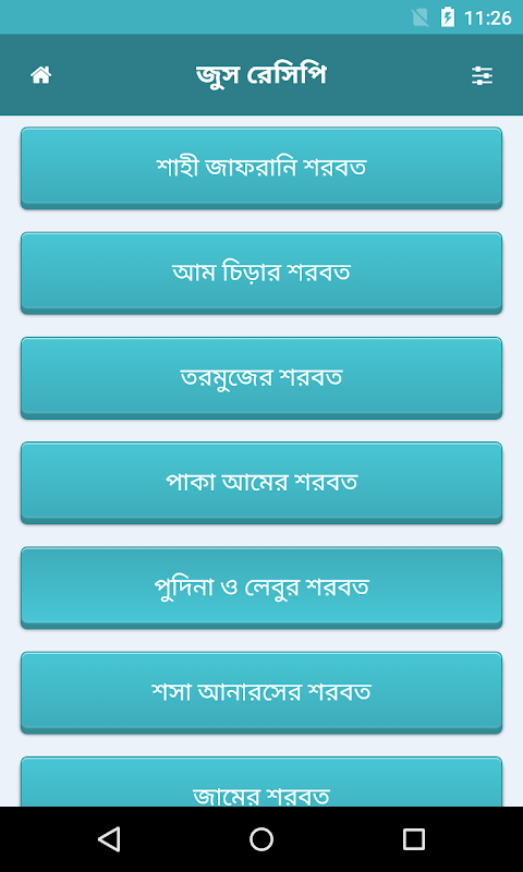 You can find this app using those keywords in Google Play: juice recipe bangla, bangladeshi fruit juice recipes, apple juice recipe bangla, kaccha mango juice, paka amer juice, kacha aam juice, bangla juice recipe, sharbat recipe in bangla, bengali sharbat, fruit juice recipes in bangla, bangladeshi juice recipes