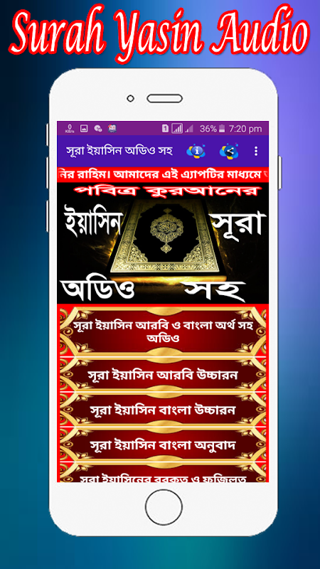 পবিত্র কুরআনের সূরা আল ইয়াসিন অডিও বাংলা অনুবাদ সহ আমাদের অ্যাপটি তৈরি করা হয়েছে