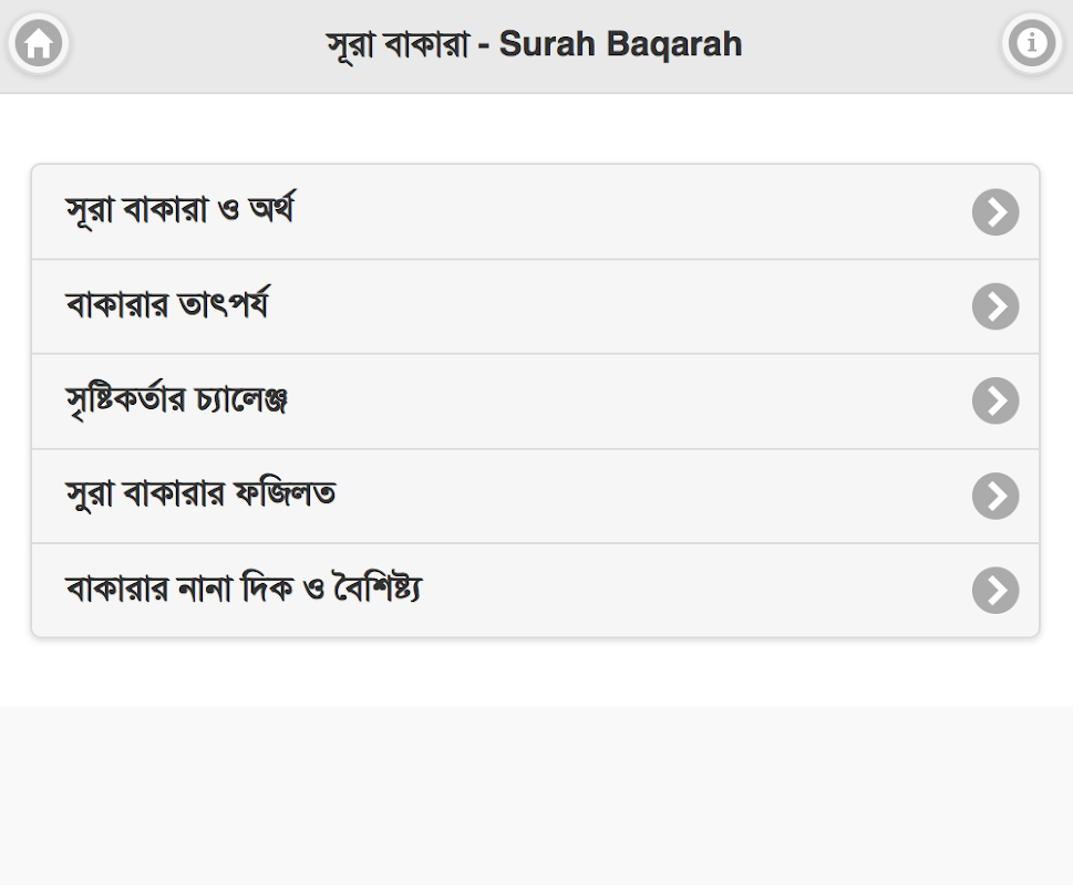 সূরা বাকারা ( Surah Baqarah) অ্যাপটি থেকে আপনারা যা যা পাবেনঃ