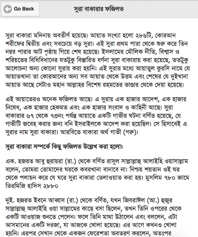 সূরা বাকারা এর বাংলা অর্থ, আরবি এবং ফযিলত এই অ্যাপে বর্ননা করা হয়েছে।
