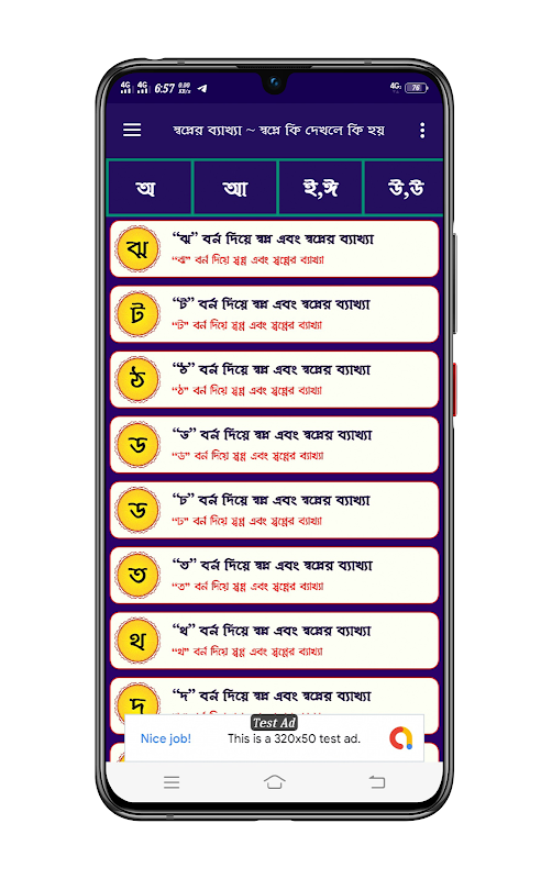 ক,খ,গ,ঘ,ঙ,চ,ছ,জ,ঝ,ঞ,ট,ঠ,ড,ঢ,ণ,ত,থ,দ,ধ,ন,প,ফ,ব,ভ,ম,য,র,ল,শ,ষ,স,হ,ড়,ঢ়,য়,ক্ষ বর্ন দিয়ে স্বপ্ন এবং অ দিয়ে স্বপ্নের ব্যাখ্যা ।