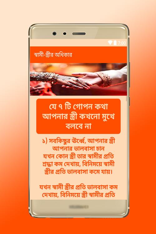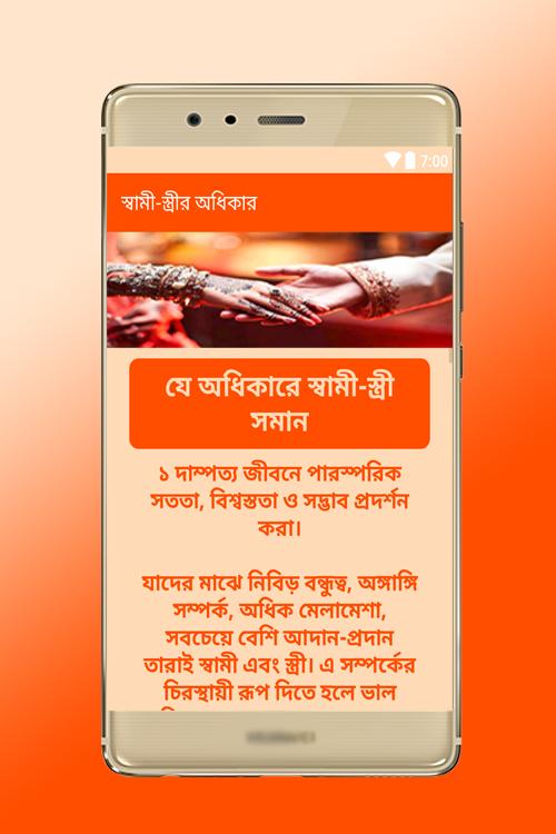 এই অ্যাপ্লিকেশানটিতে স্বামী-স্ত্রীর অধিকার সম্পর্কে প্রায় সকল তথ্য পেয়ে যাবেন।