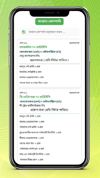 The app also features a comprehensive database of agricultural products, such as seeds, fertilizers, and pesticides, along with their specifications, recommended usage, and availability. Users can easily search for and compare different products, making informed choices based on their specific farming needs.