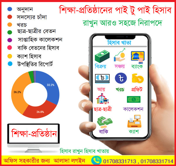 শিক্ষা প্রতিষ্ঠান, কোচিং সেন্টার , ট্রেনিং সেন্টার সহ সকল প্রতিষ্ঠানের হিসাব রাখতে পারবেন সহজে।