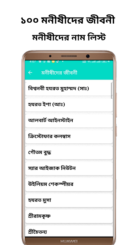 মহান ব্যাক্তিদের জীবনী অথবা ১০০ মনীষীদের জীবনী নিয়ে এটি একটি সম্পূর্ণ App