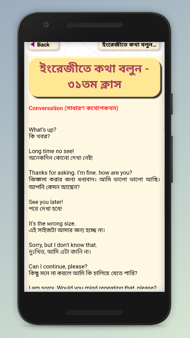 Learn spoken english app থেকে ইংরেজি শিক্ষা করে ইংরেজিতে কথা বলার বই এর মত।