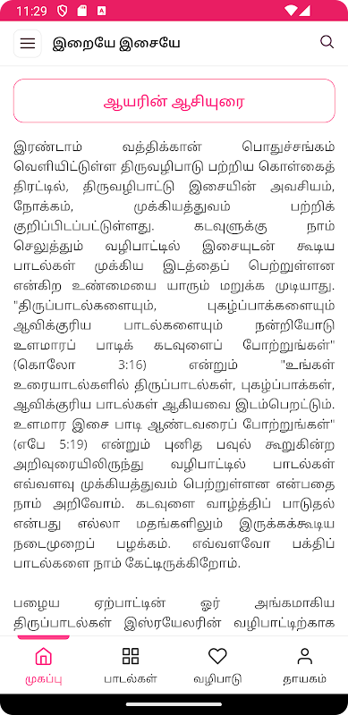This app is a Collection of Faith-Inspired songs for the Tamil Catholic Faithful