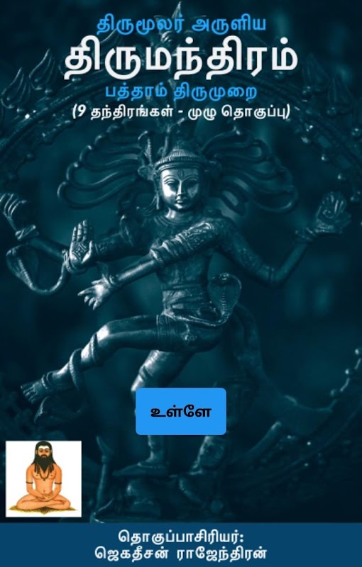 Thirumanthiram (திருமந்திரம்) is a Tamil poetic work written in the fifth century by Thirumular and is the tenth of the twelve volumes of the Tirumurai, the key texts of Shaiva Siddhanta and the first known Tamil work to use the term. Tirumantiram's literal meaning is "Holy incantation". The Tirumanthiram is the earliest known exposition of the Shaiva Agamas in Tamil. It consists of over three thousand verses dealing with various aspects of spirituality, ethics and praise of Shiva. But it is more spiritual than religious and one can see the difference between Vedanta and Siddhanta from Tirumular's interpretation of the Mahavakyas. The work covers almost every feature of the siddhar cult of the tamils and stresses on the fundamentals of Siddha medicine and its healing powers. It deals with a wide array of subjects including astronomy and physical culture. In short, the Tirumanthiram, strongly emphasizes on Love is God, (அன்பே சிவம்).