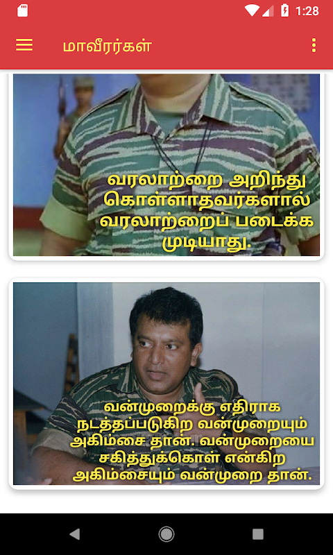 தமிழீழ விடுதலை போராட்டத்தில் வீரச்சாவடைந்த மாவீரர்களை பற்றியும், தமிழீழ விடுதலை போராட்டத்தை அடங்கிய தகவல்களையும் உலக தமிழர்களிடமும், மற்ற தேசிய இனங்களிடமும் கொண்டு சேர்க்கும் செயலி. தலைவரின் சிந்தனைகள், காணொளிகள், புகைப்படங்கள் மற்றும் ஆவணங்கள் இதில் இடம்பெறும்.