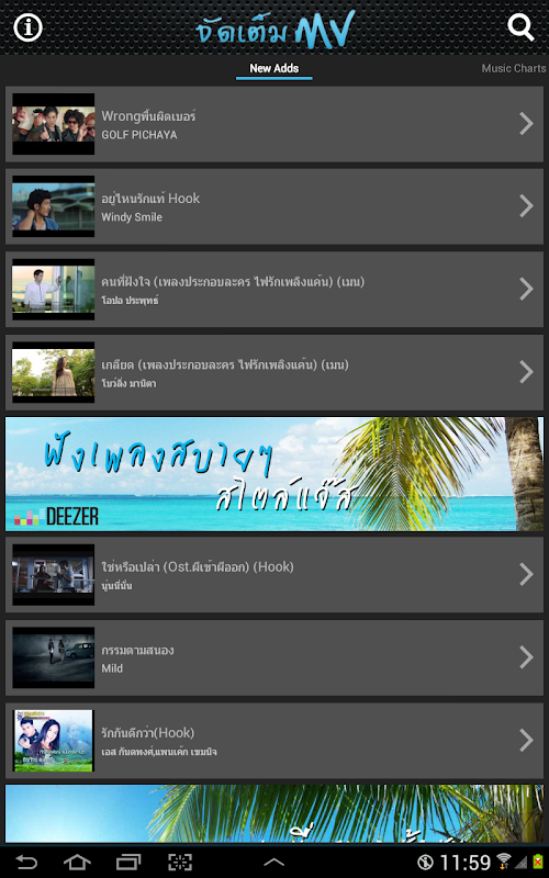 Enjoy the music video of Thai music hits along with its lyric for free! The music charts are from popular Thai radio charts which will be updated regularly. You can also download the Ringtones and Ring Back Tones by calling to the number advertised in each song. We would like to apologize for any errors that might happen. We will keep improving the application as long as you need it.