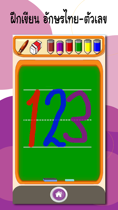 Thai writing practice app for young children that helps to write correctly both letters and numbers