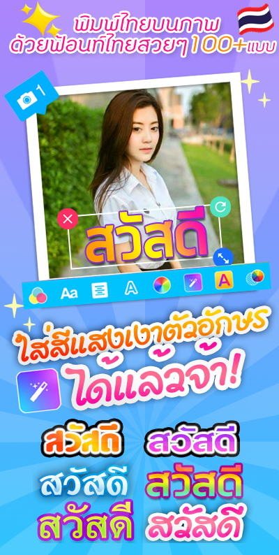 😊 แต่งรูปโดยใส่คำในรูปภาพ พิมพ์ไทยบนภาพ มีฟอนท์ไทยสวยๆ ให้เลือก 100+แบบ *ทีมงานจะอัพเดทฟ้อนท์สวยๆ ให้คุณตลอดเวลา*