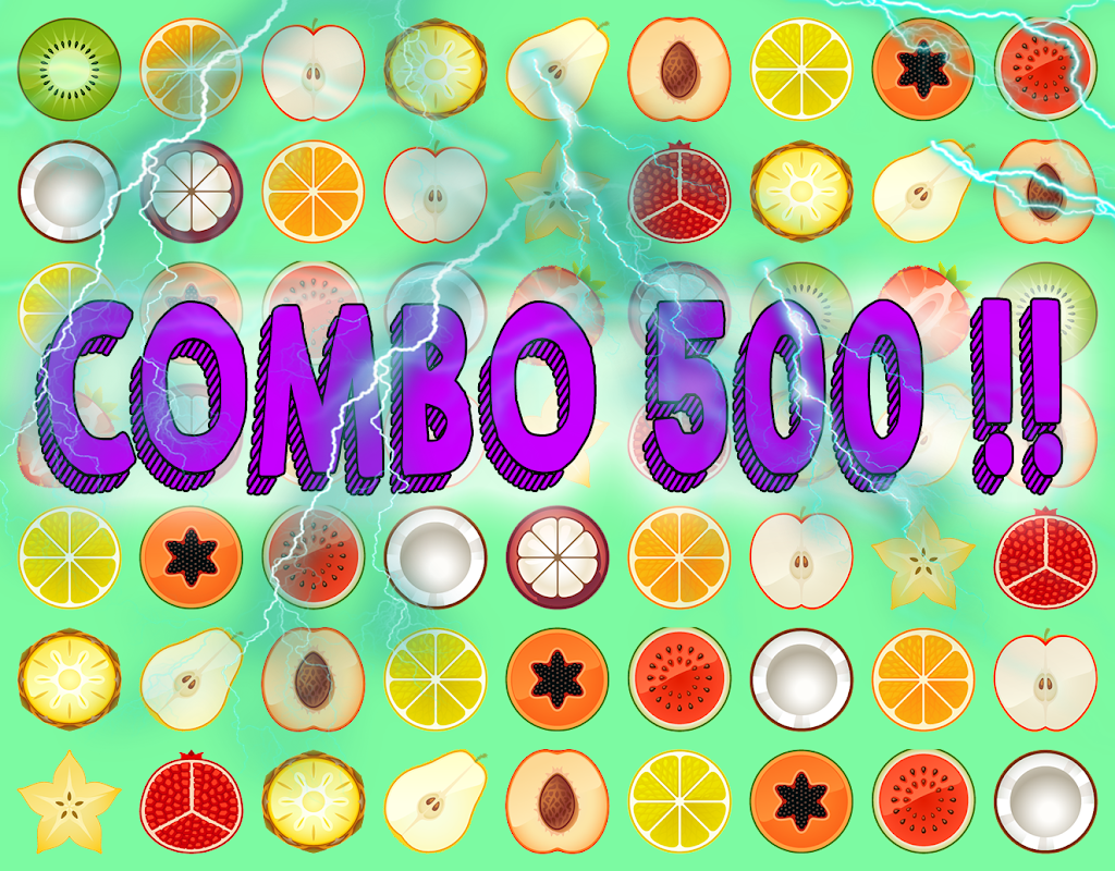 ให้เรียงผลไม้ให้ได้จำนวน 3 หรือ 4 ชนิดที่เหมือนกัน จะเป็น ส้ม แอปเปิ้ล สตอเบอร์รี่ มังคุด มะนาว และอื่นๆขอให้เป็นชนิดเดียวกัน เรียงติดกันก็สามารถจะทำลายได้