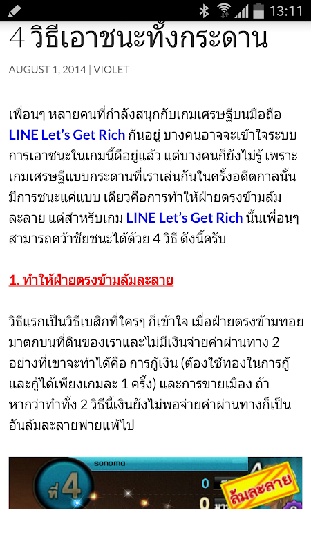หลายคนที่กำลังสนุกกับการเล่นเกมเศรษฐีบนมือถือ LINE Let's Get Rich ที่กำลังมาแรงขณะนี้ บางคนอาจจะเข้าใจระบบการเอาชนะในเกมนี้ดีอยู่แล้ว แต่บางคนก็ยังคงเป็นมือใหม่ หรือผู้ที่เพิ่งหัดเล่นเกมส์ LINE Let's Get Rich คงยังงง เราจึงรวบรวมวิธีการเล่นเกมส์เศรษฐีที่สำคัญ ๆ และจะทำให้เพื่อนสามารถเอาชนะและรวบรวมเหรียญรางวัลมาเป็นของตัวเองให้ได้