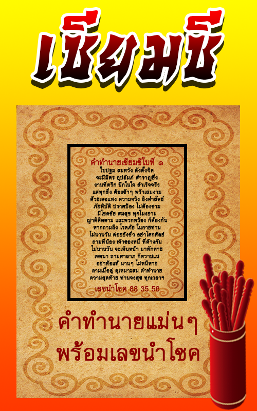 มาทำนายเสี่ยงโชคด้วยการ เขย่าเซียมซี มีทั้งดูดวงความรัก ดูดวงการงาน ดูดวงการเงิน และดูดวงทั่วไป พร้อมเลขเด็ด เลขมงคล เลขนำโชค ของตัวท่านเอง