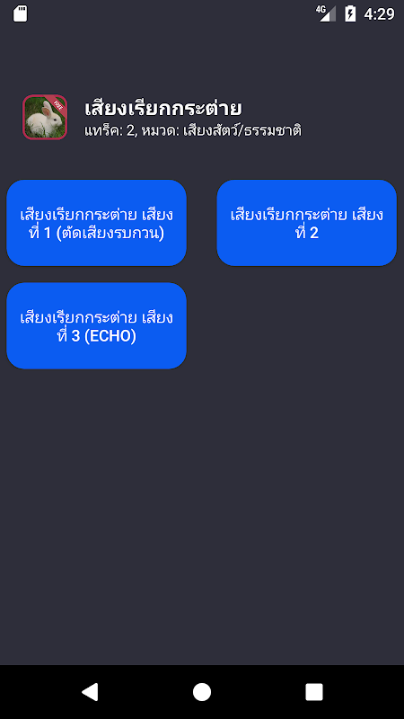 แอพเสียงขลุ่ยเรียกกระต่าย สำหรับเรียกกระต่ายเข้าบ้าน หรือล่า เป็นการจำลองเสียงเท่านั้น