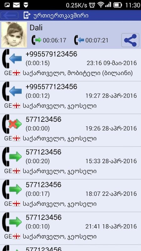 ზარების ისტორია, ქვეყნების და ქალაქების სატელეფონო კოდები, საქართველოს ოპერატორების სრული სია და მათი ინდექსაცია. ზარების და ურთიერთკავშირის ექსპორტი Excel-ის ფორმატში.