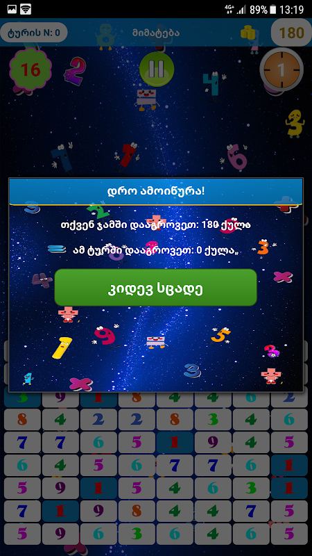 * აპლიკაციაში თავმოყრილია სხვადასხვა სახალისო და სააზროვნო ამოცანები, ამ ეტპისთვის აპლიკაცია შედგება მიმატებისგან და ნამრავლისნა, გგონიათ ეგ მარტივია ? სულაც არა! აბა სცადე და k, თქვენ შეძლებთ შედეგებით შეეჯიბროთ თქვენს მეგობრებს.