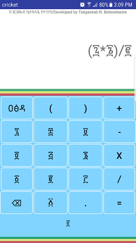 ይህ የተሻሻለው የሂሳብ ማስሊያ (ካልኩሌተር) የሂሳብ ስሌት ውጤቶችን በፈረንጅ ቁጥሮች ከመጻፍ ይልቅ በኢትዮጵያ ቁጥሮች ጽፎ የሚያሳይ ነው።