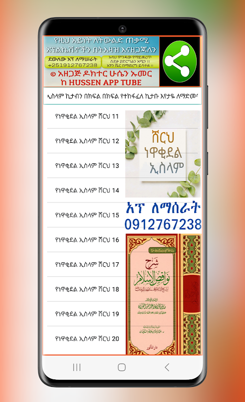 This app is designed in such a beautiful way by Dr. Hussain Umar, and we prepare Quran lessons, Hadith lessons and also Tafsir applications by order. You can reach us on this phone number 251912767238