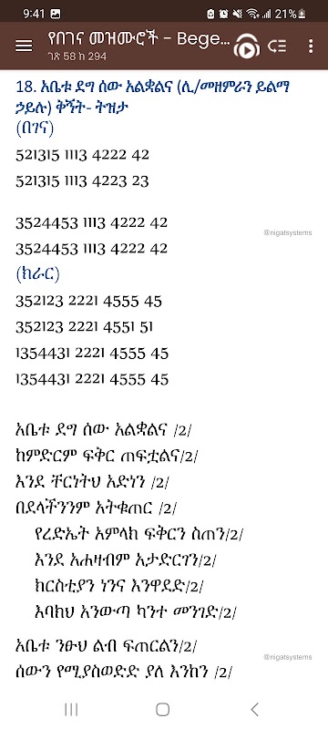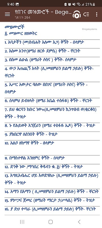 በርካታ የበገና መዝሙሮች ከነ ቁጥሮቻቸው ፡ ቅኝታቸው ፡ ዜማቸው ፡ የያዘ በገና ለሚደረድሩና ለሚማሩ አጋዥ መተግበሪያ