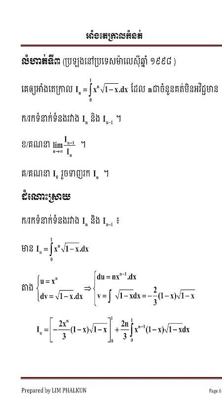 នេះគឺជាកម្មវិធីទាក់ទងនិងគណិតវិទ្យា ជាសៀវភៅគណិតវិទ្យា អាំងតេក្រាលកំណត់ ដែលបានរៀបចំឡើងជាមួយទូរស័ព្ទ