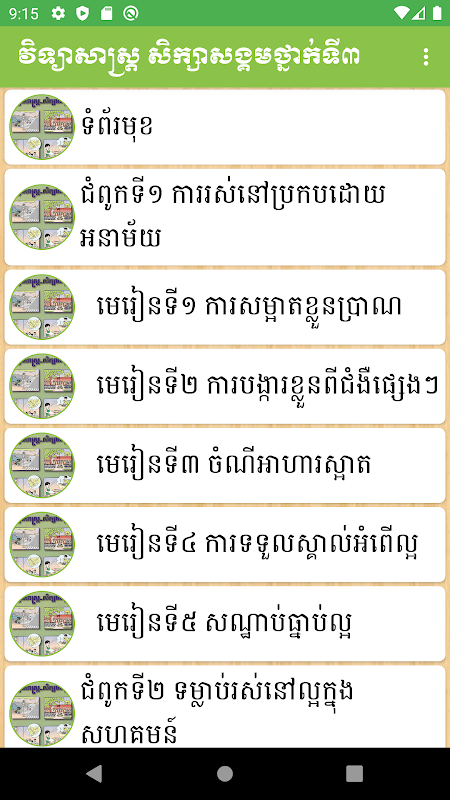 Social Science Tier 3 is a program drawn from Cambodia's Ministry of Education, Ministry of Education, and Primary Education. There are lessons: