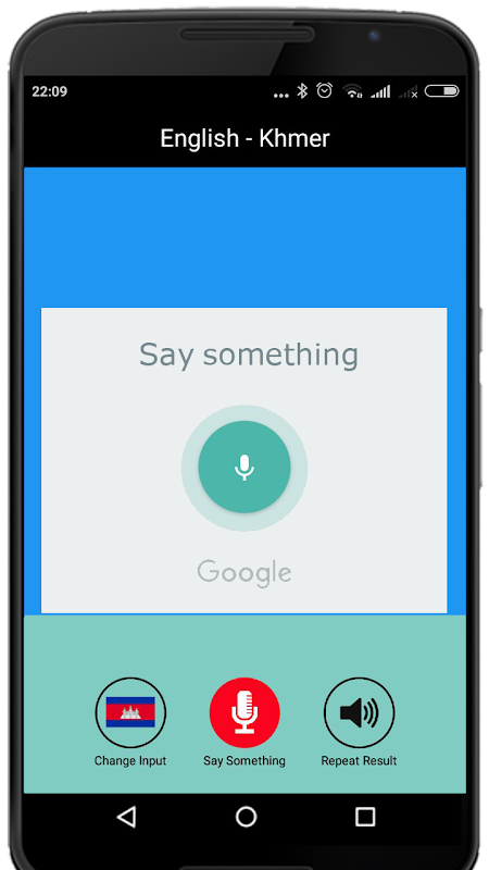 On the other hand, someone else can speak something in English, and this application will be translated into Khmer with text and audio output.