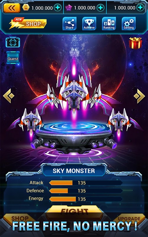 ★ Use protective shield, spacecraft reinforcements, and destructive bomb wisely to deal with the bosses. It’s a lethal galaxy war, so be careful. Upgrade your squadron to survive, you’ll need it.