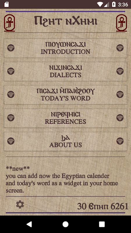 The application contains a new Coptic word every day and widget for it.