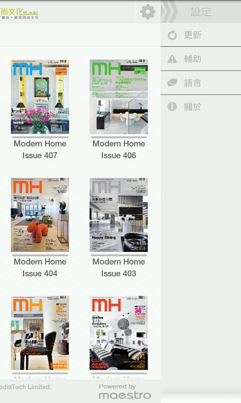 **《Modern Home》與「首尚文化」合作開發此電子書閱讀平台, 此平台上的所有雜誌皆為最新出版**