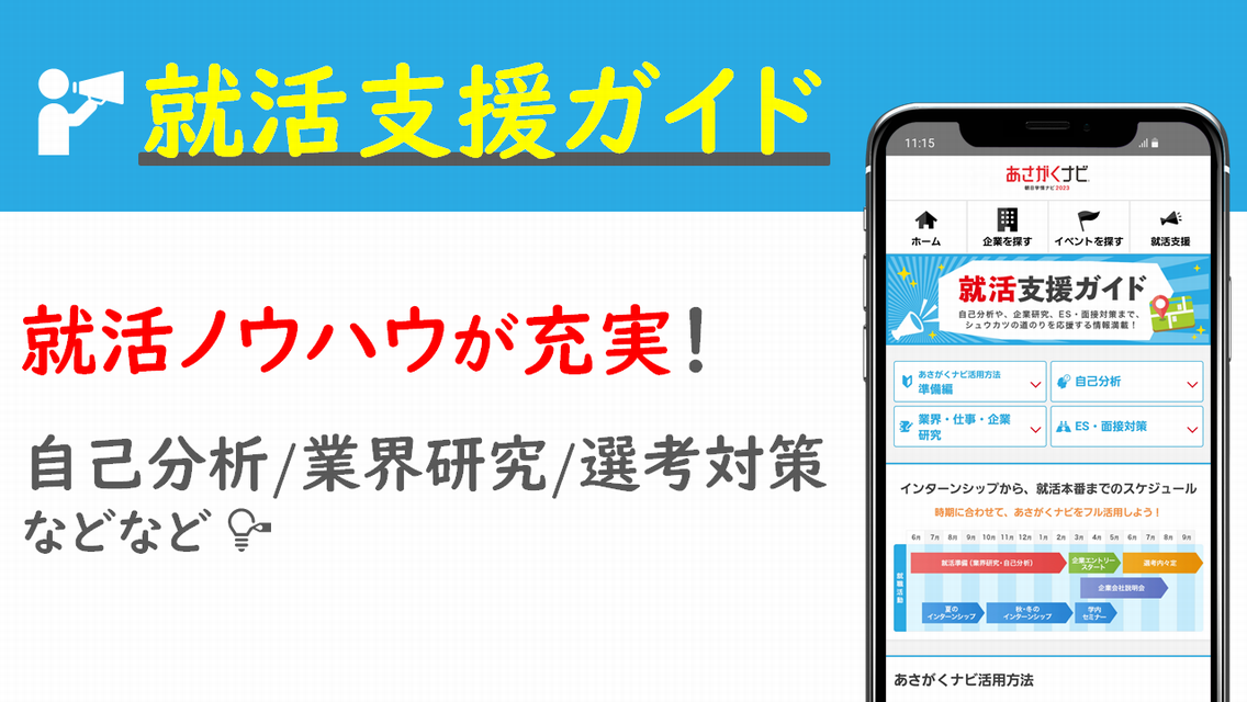新卒向け就活・就職情報サイト「あさがくナビ2023」の公式アプリです。