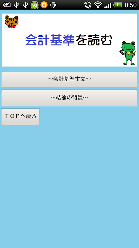 Top画面の『会計基準を読む』を選択すると、会計基準の本文と結論の背景が項目ごとに確認できます。