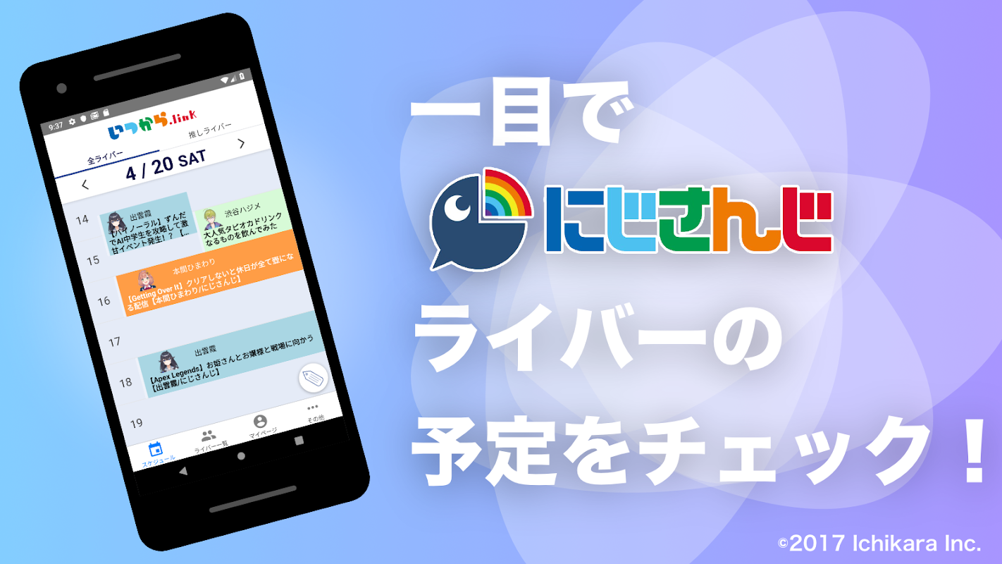 The app version of the dedicated schedule site "When do it .link" where the delivery of the Virtual Liber Group "Niji Sanji" can be understood at a glance!