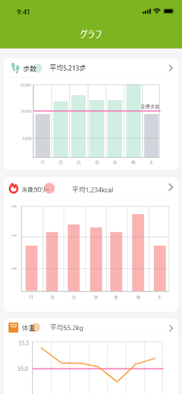 In addition to recording the number of steps, you can also register your weight and blood pressure records.