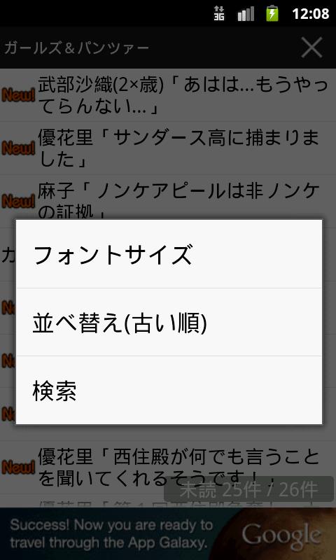 [作品一覧画面]と[本文画面]のみ端末のメニューキーからフォントサイズを変更することができます。